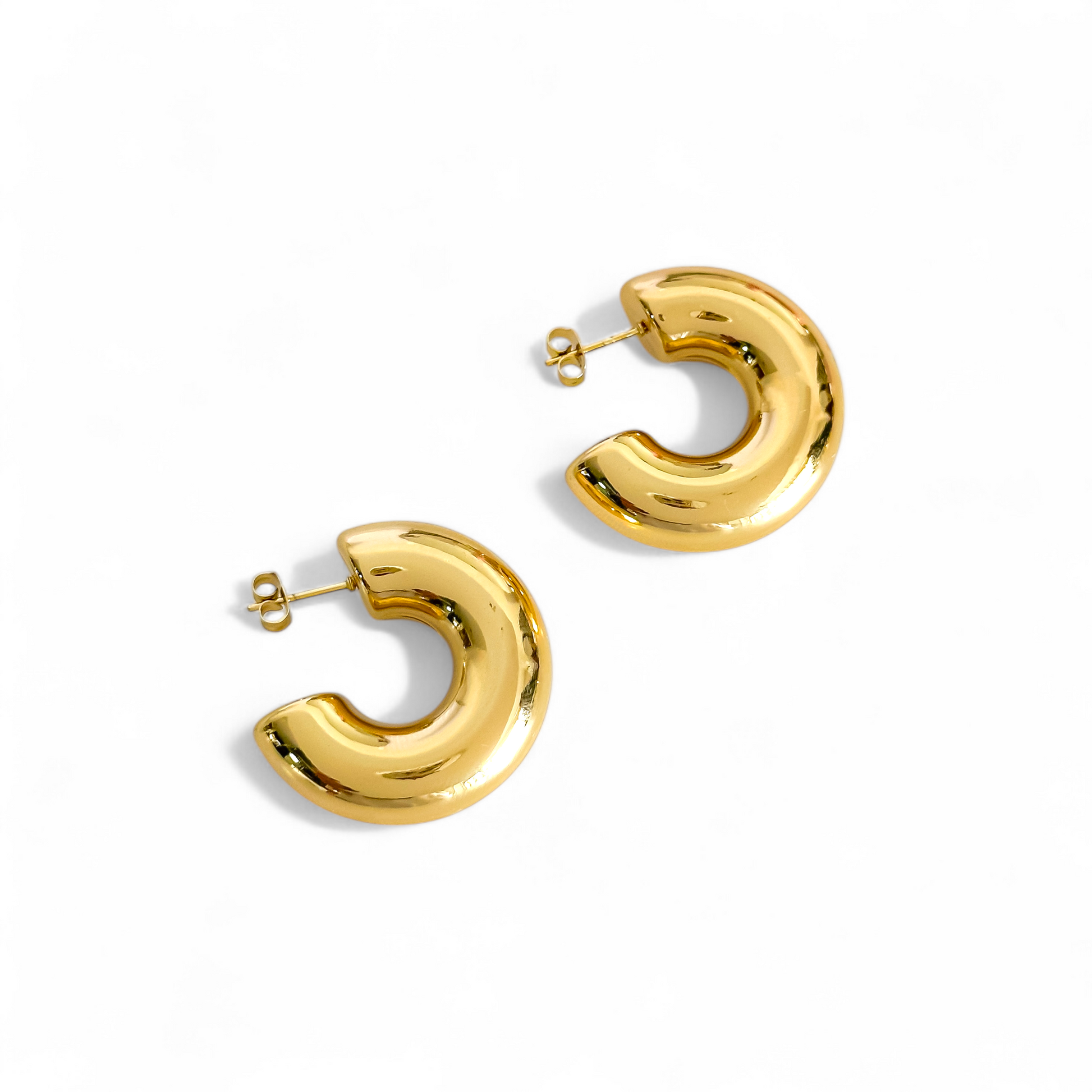 Piezas elaboradas en acero inoxidable con baño de oro 18k, diseñados para ser hipoalergénicos y seguros para todo tipo de piel.